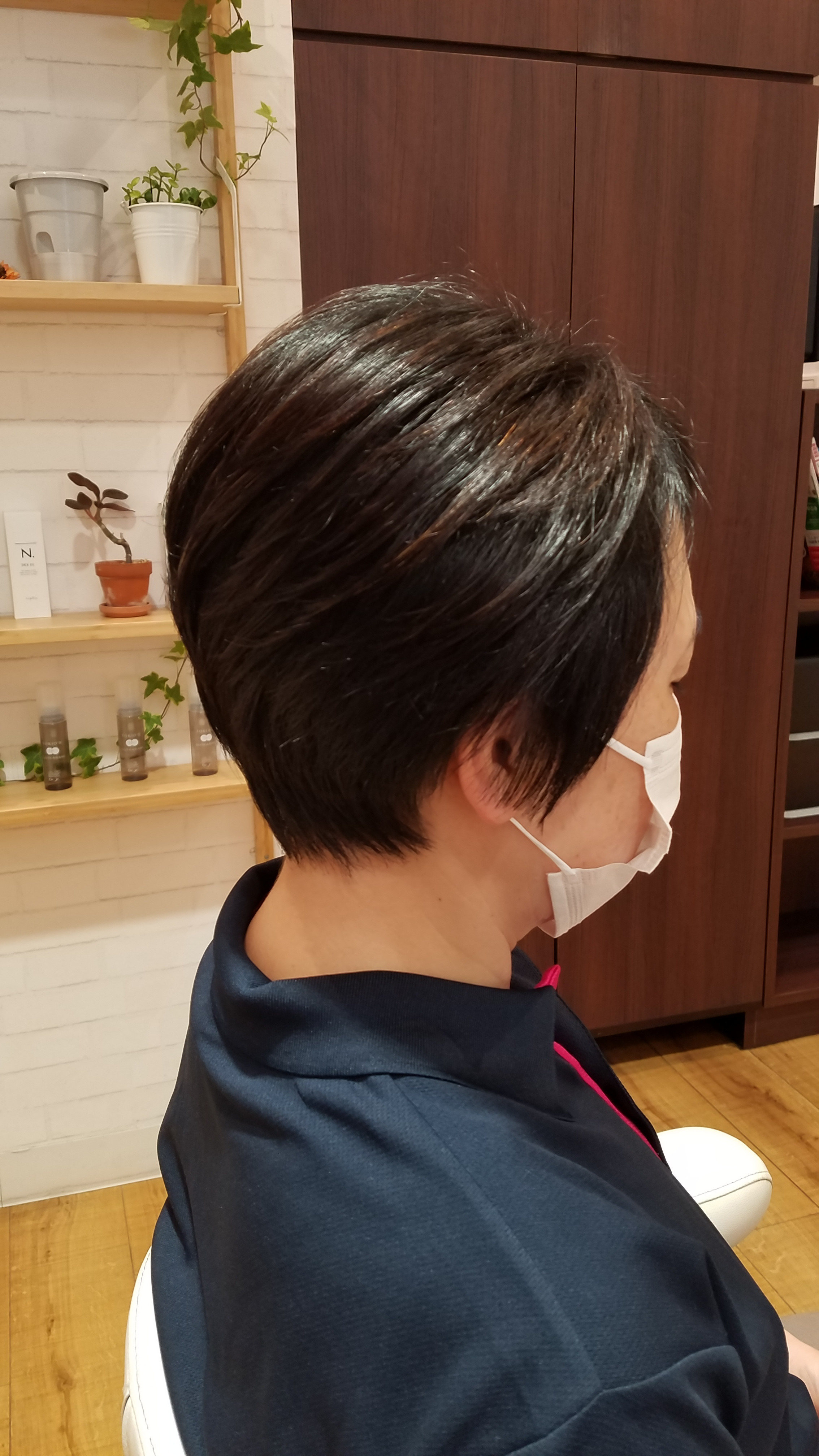 横は耳たぶのラインで切り後ろに流したオーダーの多いショートヘアです。