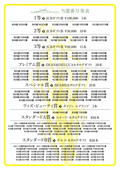 ビューティーチケット当選番号発表!