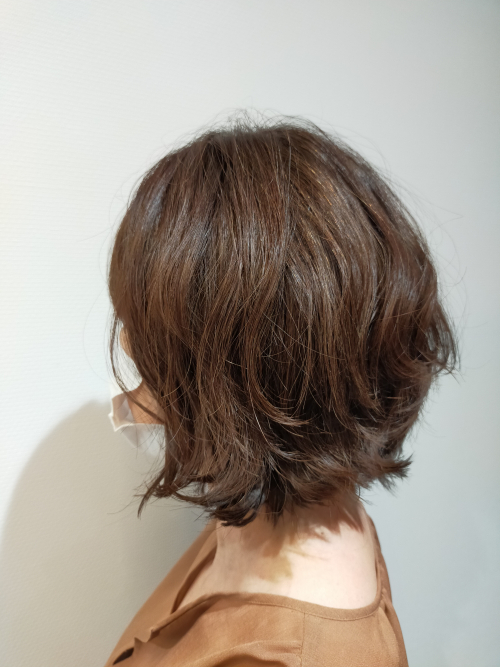 いつものシンプルな内巻き仕上げとはガラリと雰囲気が変わり、こちらもとてもお似合いでした。